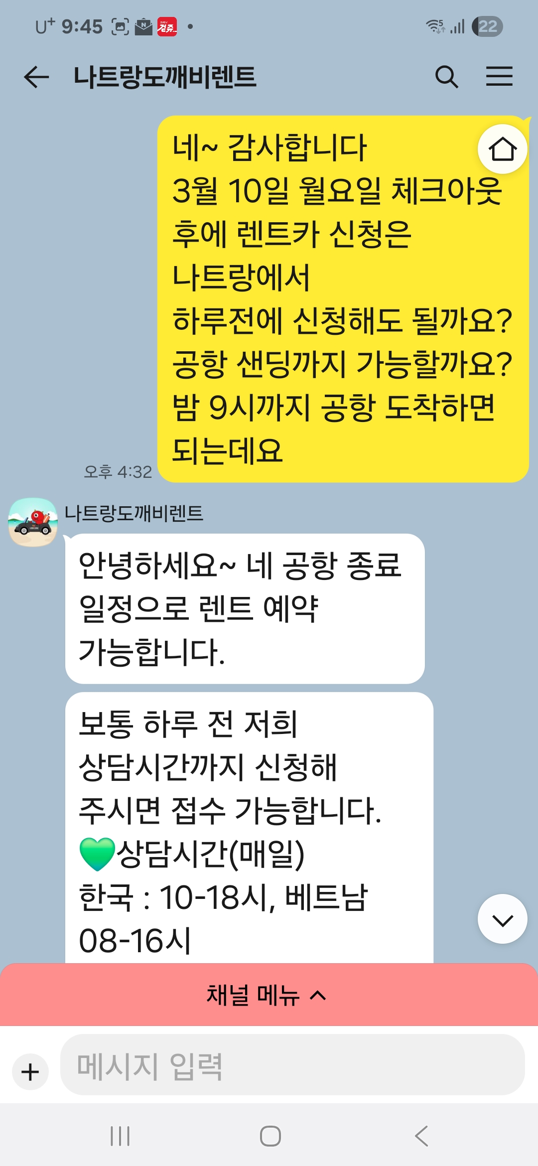 따로 카톡채널이 있어서 더욱 좋았어요.