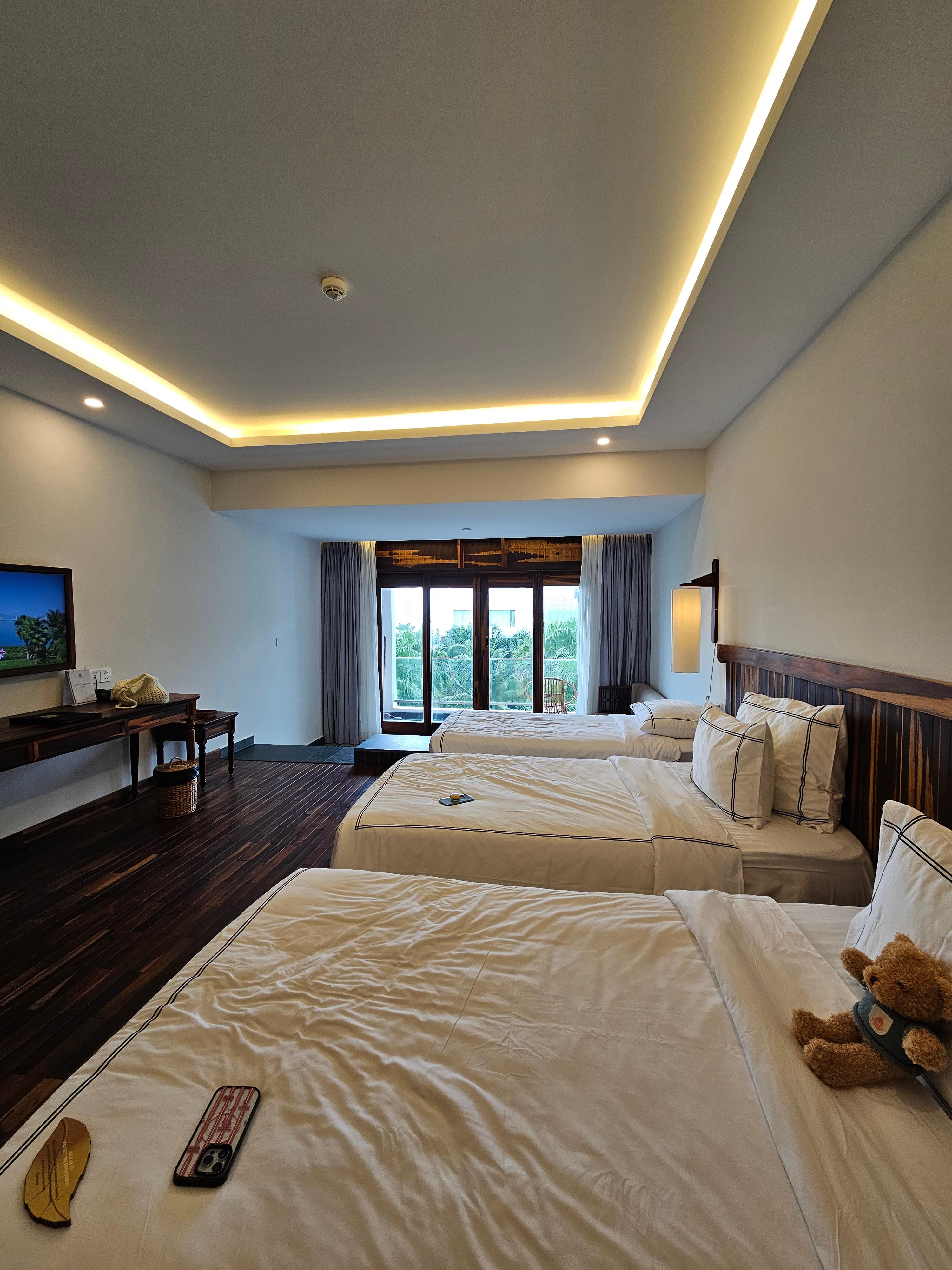 호텔 룸 발코니 씨뷰 2개(5명)로 예약 했어요!.