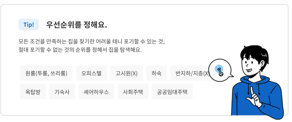 급한 마음에 결정을 하지 않도록 꼭 미리 생각하고 집을 구하기를 바래요.